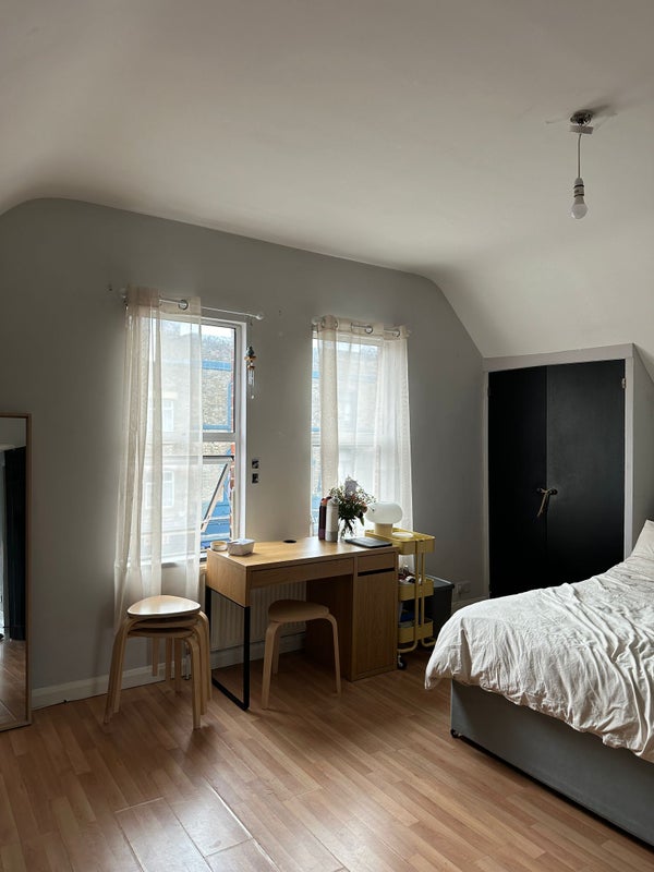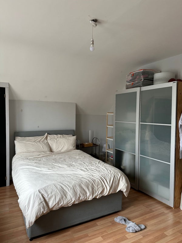 🏠 The house is located above an off license shop, great to receive all day mails and delivery. It consists of three bedrooms, two bathrooms(only main one with shower), very spacious kitchen and separate living room, equipped with a large TV for great movies nights! The room that needs to be filled is the largest one, as big as the living room, located on the second floor. It already includes double bed, warbrode, extra storage, wooden furniture and potentially a desk. It has plenty of extra space and it gets a lot of natural light.