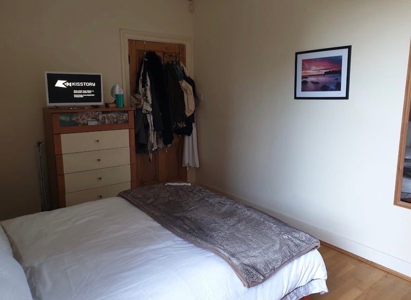 1 x Double rooms available in 3-bed flatshare. Comes with wardrobe, chest of drawers and double bed with under bed storage.