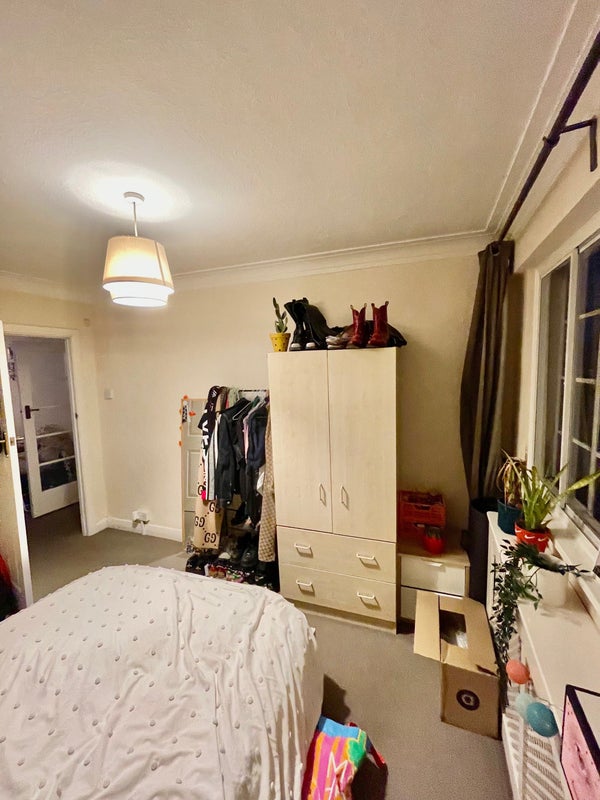 Both rooms are the same size, but one comes with a built in wardrobe. Both rooms are £735 + bills which altogether come to around £130 each (maybe a little more in winter). Some furntiture is included in both rooms but I can give you more info on this if you msg me/are interested! One of the rooms is located just off the living room so usually don’t stay up much later after this person goes to bed just be respectful with noise etc! Sorry the photos are taken in the evening - I can get updated pics in the day so you can see the bedrooms properly just wanted to get the ad out asap!