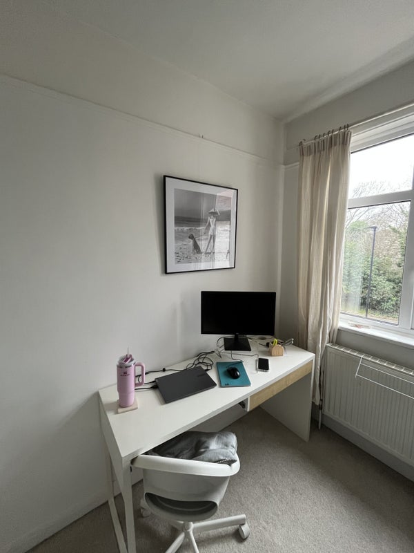 The tenancy ends in October 2026 but there is the option to extend. Bed/mattress, wardrobe and chest of drawers included in the bedroom. Desk included in the study room and I’m looking to sell my bookcase for £30.