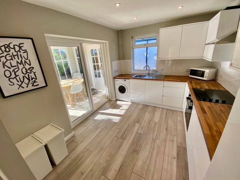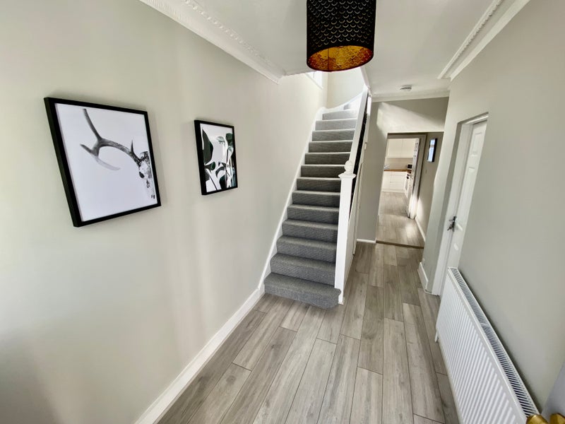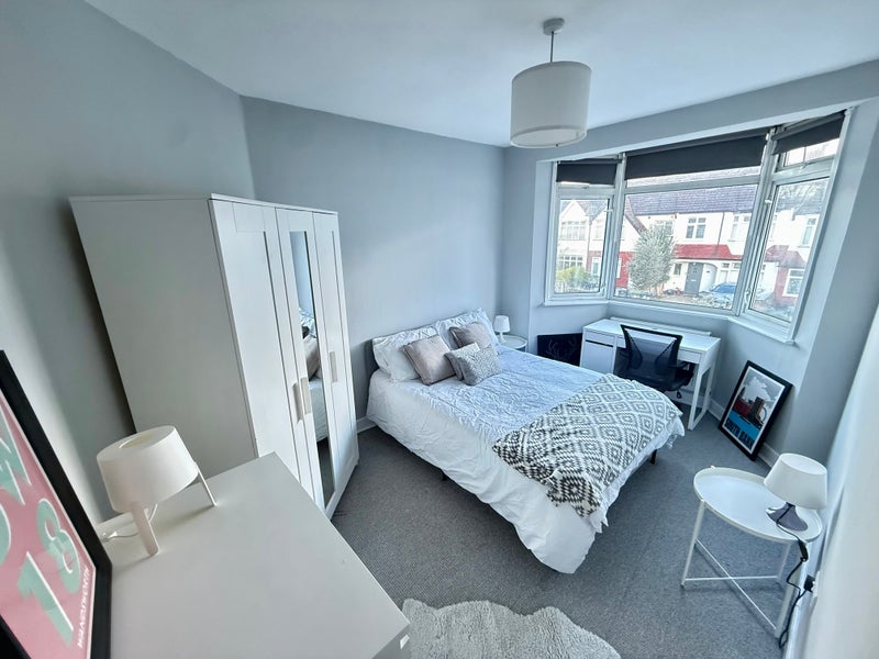 The room comes with a double bed, a side tables, wardrobe and set of drawers and desk and chair. The property benefits from carpets throughout, 2 gorgeous bathrooms, a brand-new fitted kitchen with plenty of cupboard space, 2 fridge freezers and a washing machine (all appliances are new). As you can see from the photos, the property has been completed to a very high standard. Everything in the house is brand new.