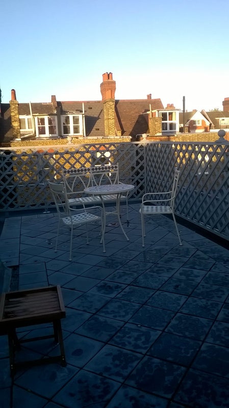 This lovely room has a built-in wardrobe, double bed, desk and fitted carpets; access to a roof terrace and courtyard garden; two bathrooms and shared kitchen-dining room – just four minutes from Streatham Hill Station, buses to all parts of London and a great selection restaurants, shops and gyms.