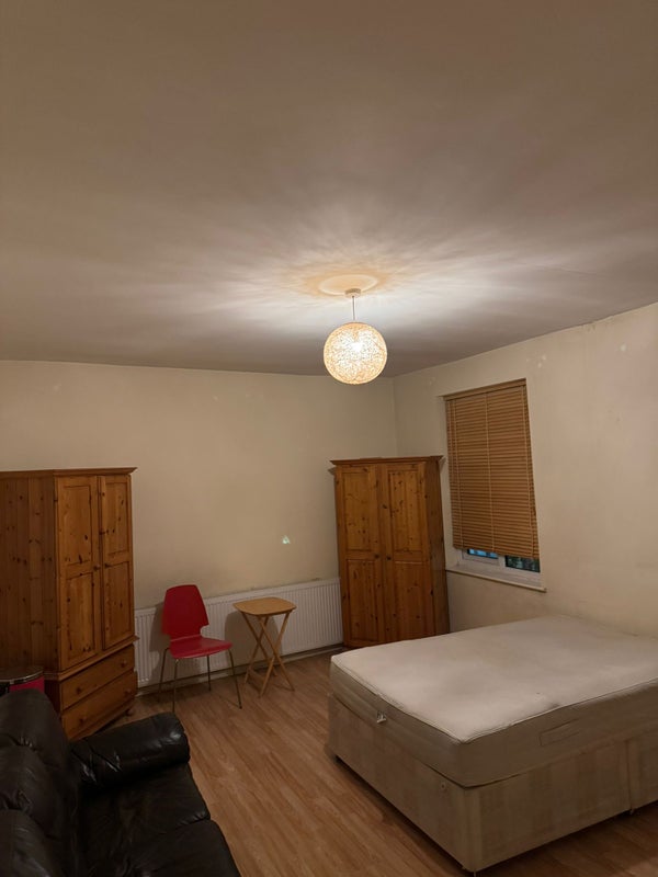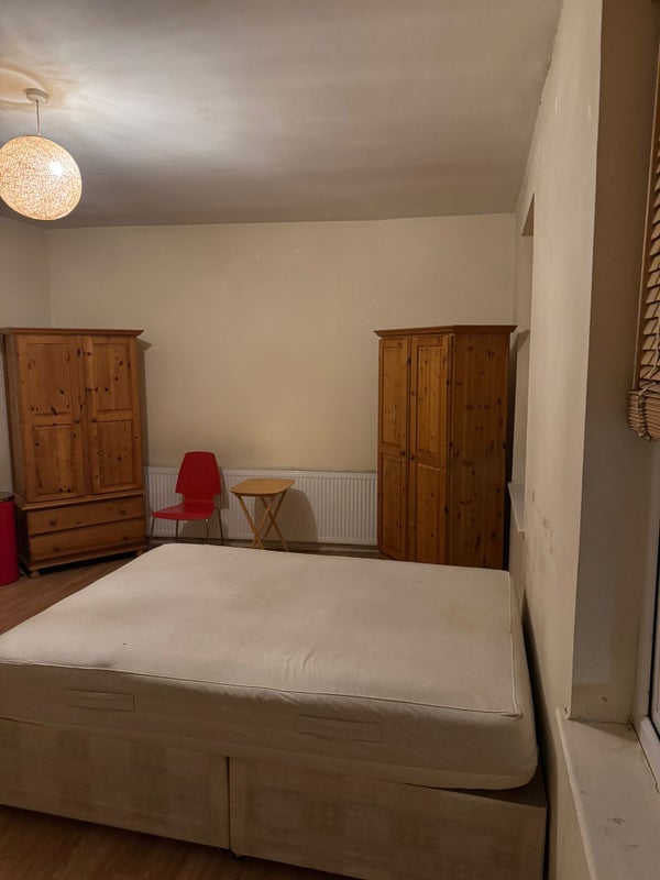 This is a lovely spacious double room in a shared flat with 3 other ladies. Would suit working professional. The room comes furnished with a double bed, 2 wooden wardrobes, a double sofa a small table and chair. There is a shared bathroom and kitchen on the first floor. Room is on the second floor.