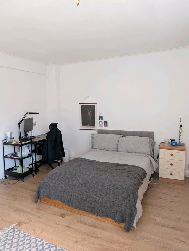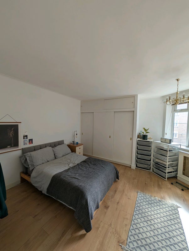 Large double room available in a spacious 4 bed flat by Swiss Cottage tube station. The flat was renovated a few years ago so in good condition. You will be living with 3 females (late 20's-30's) and is ideal for somebody who both likes to catch-up / be involved in an occasional flat dinner but also respectful of other peoples space.