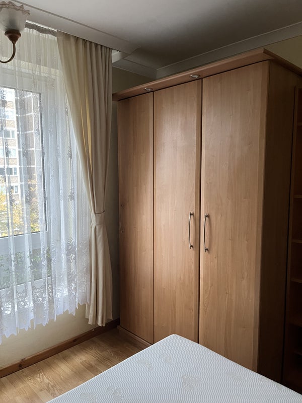 The room comes with a desk , a wardrobe , a double bed , book shelves , a chest of drawers and more. Kitchen, bathrooms are shared in the house.