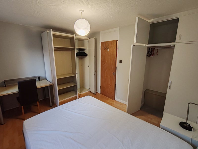 Room is recently decorated, double bed, desk, bedside drawers, and has loads of storage, including built in.