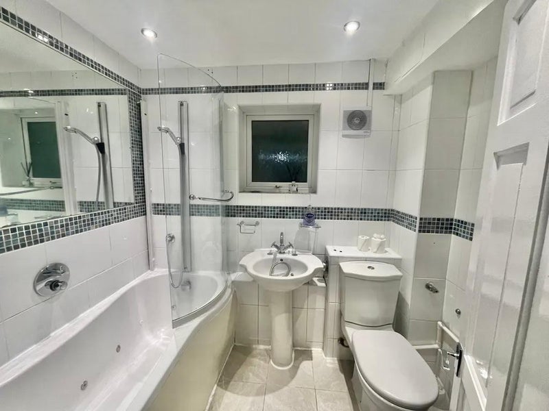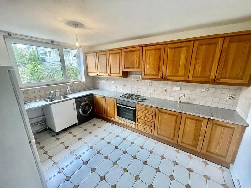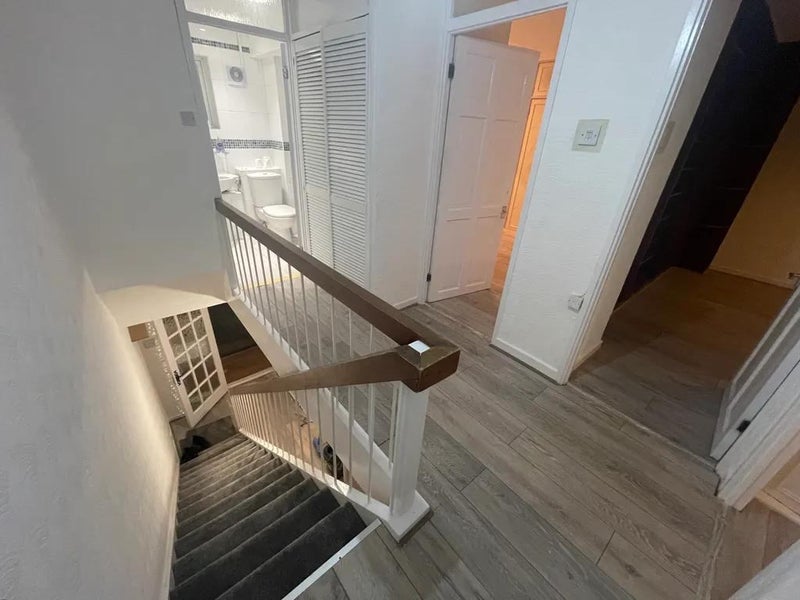 The flat has no living room but a spacious communal shared kitchen with a dining table. It has 1 bathroom upstairs and a wc downstairs.