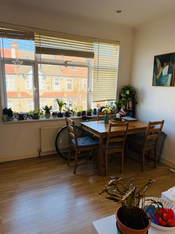 The current tenant is a peaceful, tidy and very kind flatmate and has made the flat into a home with artworks and plenty of plants. She is a big fan of classical music and works in finance for an orchestra. She is also big on making clothes, reading, exploring London's history and culture and the odd visit to Portugal where she lived for several years. She'd love to live with a flatmate who'd enjoy a calm and tidy home, shared interests even better.