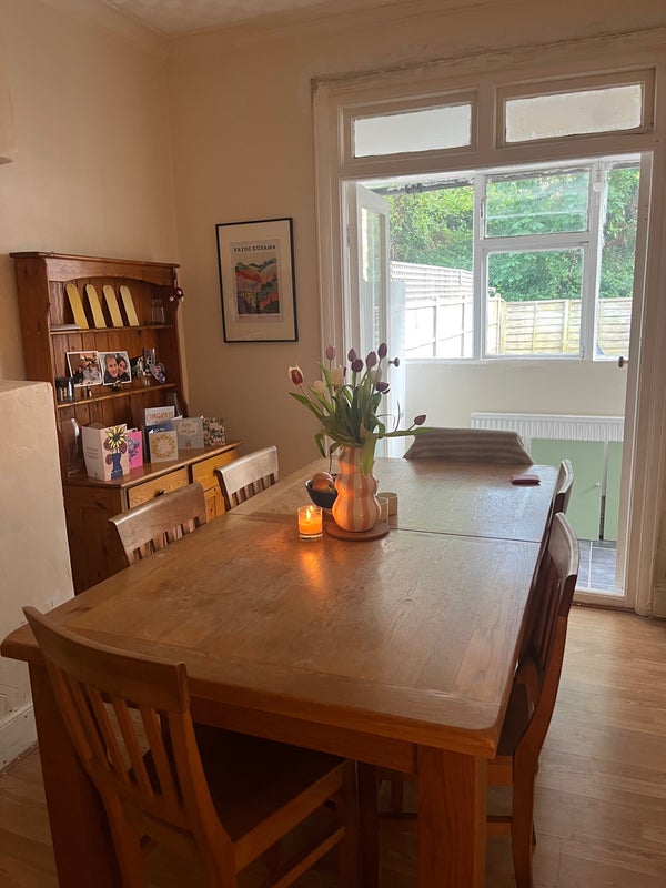 My partner and I (male and female, age 25) own the house and live in the top floor bedroom which has an en-suite. We both work full time with 4 days in office and love keeping active, meeting up with friends and trying new restaurants. Our friend (female, age 26) is living in the other room on the middle floor. She is also working full time and mostly in office too. We are really loving sharing the house and getting to know new people so are excited to find the perfect match to fill this room!