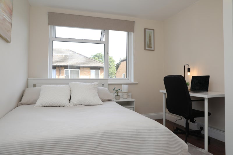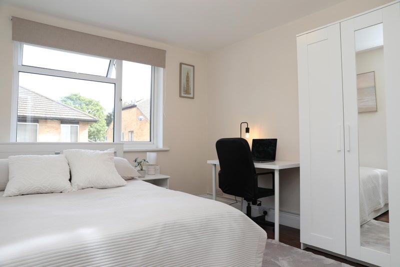This generously sized double room is fully furnished. It comes complete with a double bed, a wardrobe, a chest of drawers, a bedside table, and a desk with a chair. The room also boasts a large window, ensuring plenty of natural light streams in! 🔅