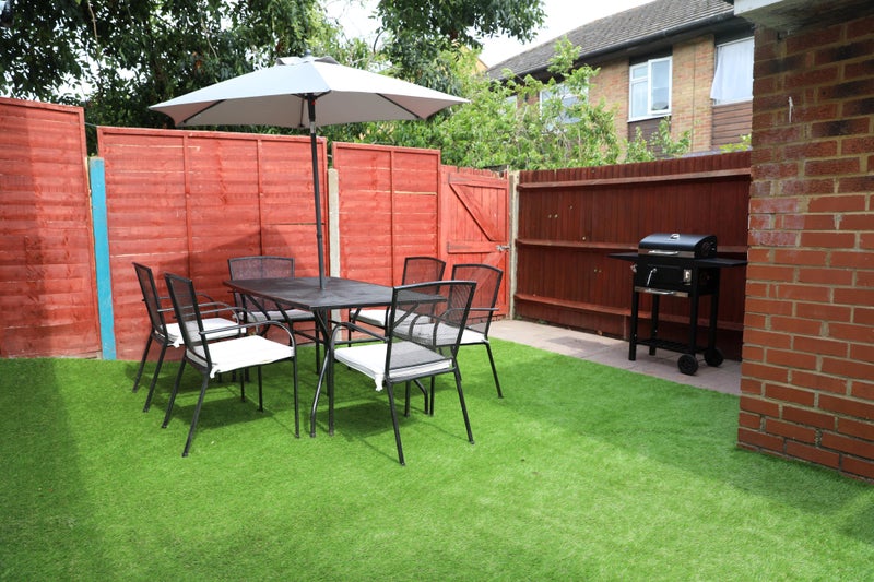 This gorgeous 5-bedroom house spans three floors, offering comfortable living with a spacious open-plan kitchen/living room (complete with a Smart TV for all your streaming needs!). It includes two bathrooms (each with a shower, sink, and toilet), plus a convenient separate toilet. The property also features a lovely garden, perfect for outdoor meals and relaxation, complete with a table, chairs, and a BBQ!👌