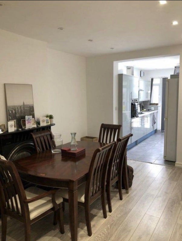 The house has a living room, large dining room, kitchen, and garden. The house is on a quiet residential street 10 minutes walk from the northern line and 5 minutes from the pubs, shops and restaurants on Tooting high street. It's also within walking distance from Tooting and Wandsworth commons. Street parking available outside with a permit.