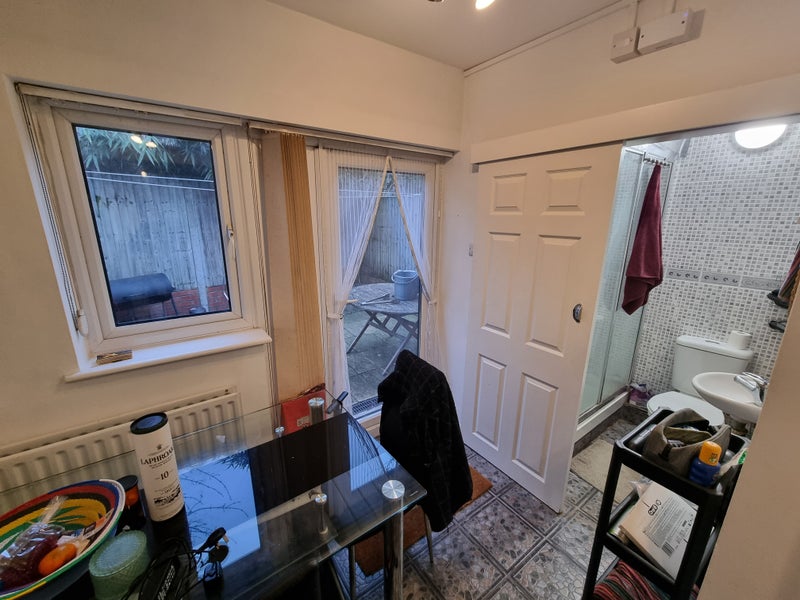 This terraced house includes which includes two full bathrooms, shared kitchen/living areas and an outside patio. Shared spaces are fully furnished and the house has central heating.