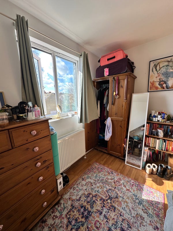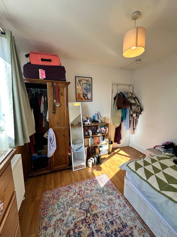 It’s a double room on the top floor of a 5-bedroom house in Tooting. And I’ll be leaving some stuff in but you’ll have space in the wardrobe and chest of drawers as well as the bedside unit (and help yourself to any books on my bookcase!)