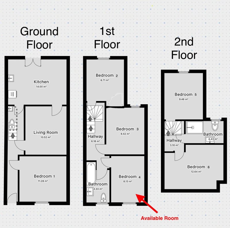 This beautifully refurbished six-bedroom house is thoughtfully spread over three floors, designed with comfort in mind. It features a spacious kitchen and living area with all appliances and utensils ready to use—ideal for meals and socialising. 🥂