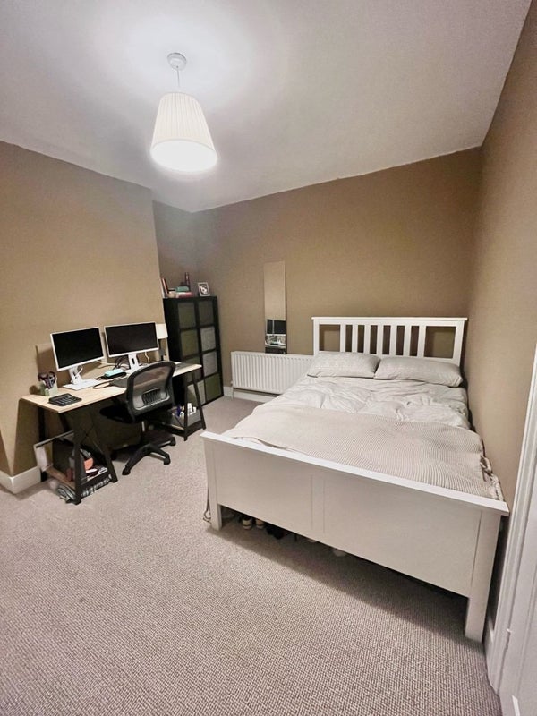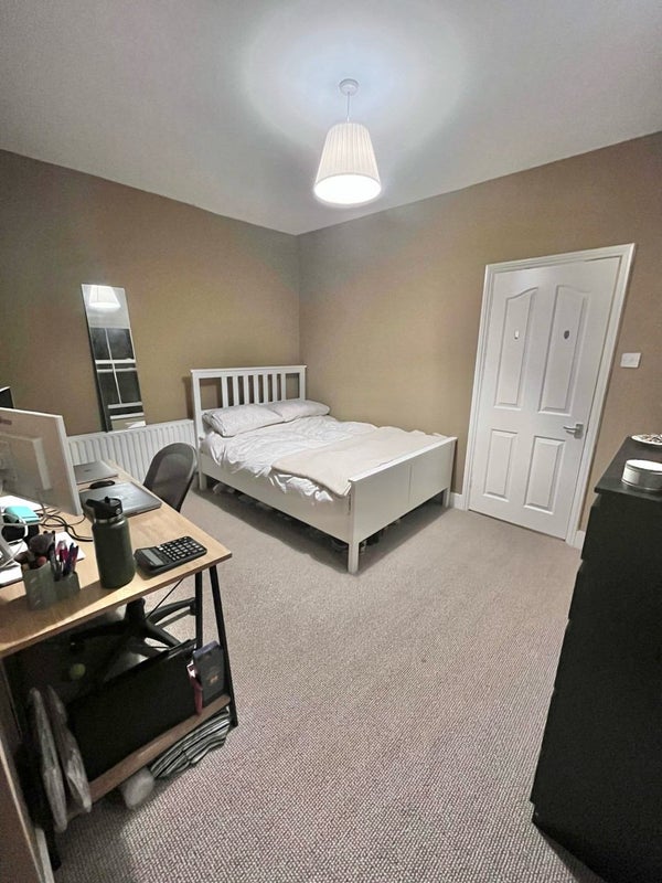 Furniture in the room - desk chair came with the room, all other furniture was my own but I am looking to sell my bed, mattress and chest of drawers. So can discuss if interested.