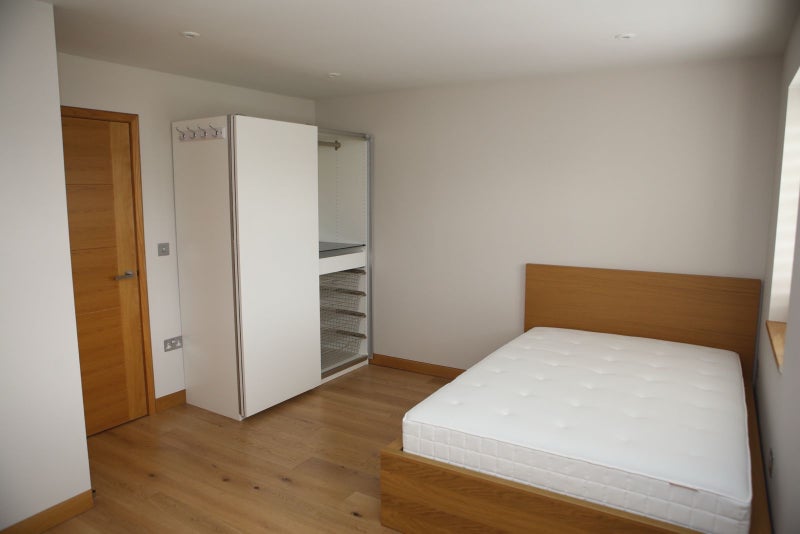 It is a bright ensuite double bedroom and comes with a double bed and a wardrobe, as well as an optional desk and a set of drawers.