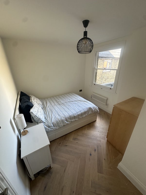 Spacious with good lighting. Currently has a king size bed (as in photos). Comes with Chester draws, under bed storage and I can provide a rail for anything that needs hanging.