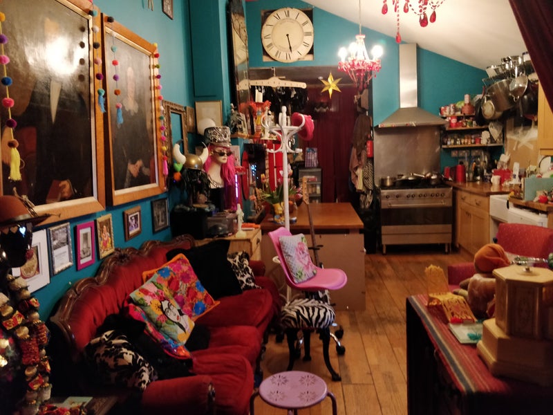 The flat is quirky, arty and full of colour and wonderful stuff.