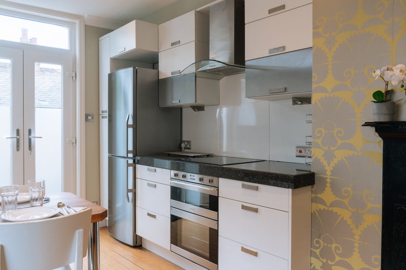 - Appliances include fridge/freezer, 4x spot hob, oven, dishwasher, washing machine