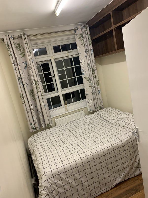 A bright and nice furnished double room with a double bed and spacious wardrobe plus chest of drawers in a well looked-after flat.
