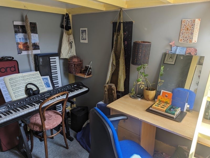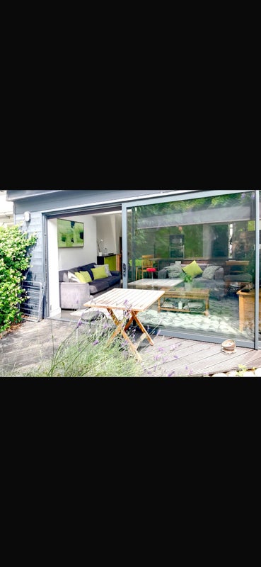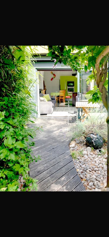 - Shared kitchen-sitting room which overlooks a sunny garden.