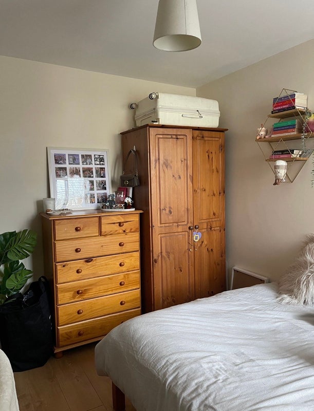 The bedroom available is fully furnished with a bed, wardrobe, chest of drawers, bedside cabinet.