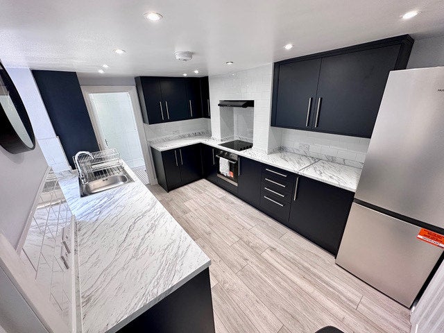 The room is a good size with new double bed and orthopaedic mattress, new bedside table and drawers. All bills are included in the price along with high speed broadband internet and a cleaner fortnightly. There is a large kitchen and separate lounge.