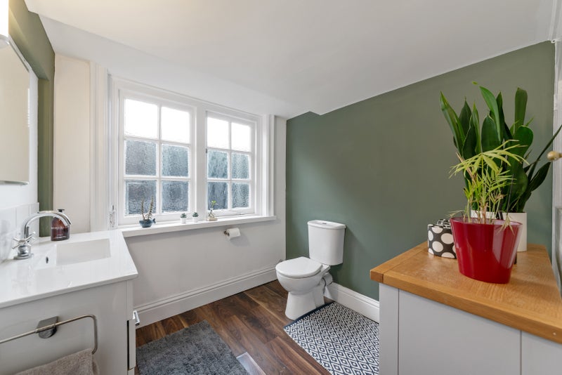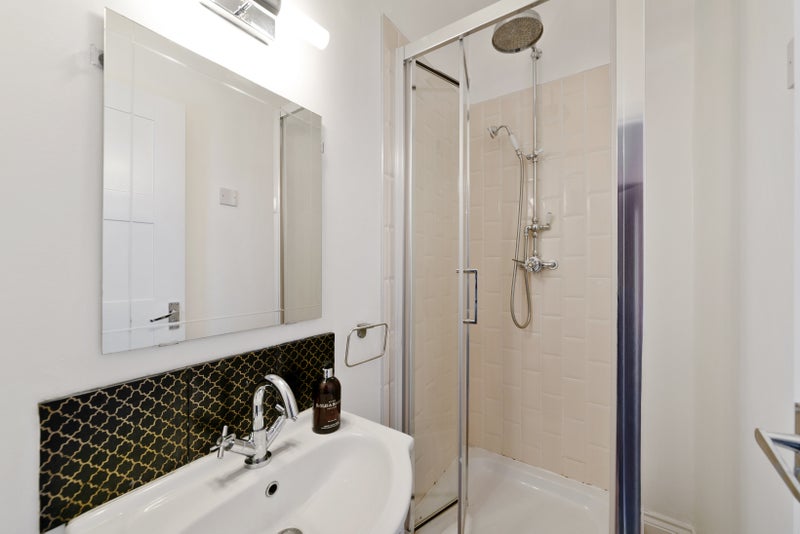 There’s an ensuite shower-room and washbasin located in the room, with toilet just outside.