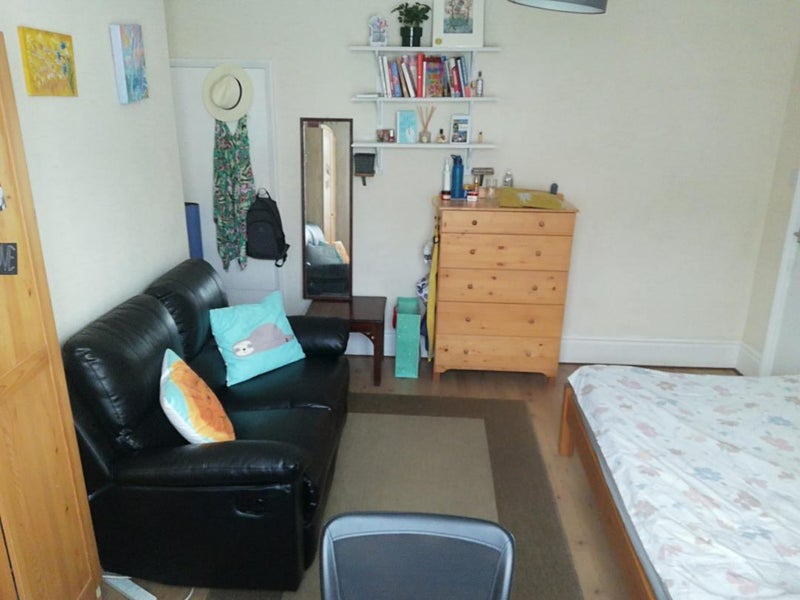 Big double room available from 31/3/26. There's a sofa, double bed, wardrobe, chest of drawers, desk, chair and coffee table in the room. £650pcm all bills included. Approx. dimensions:
