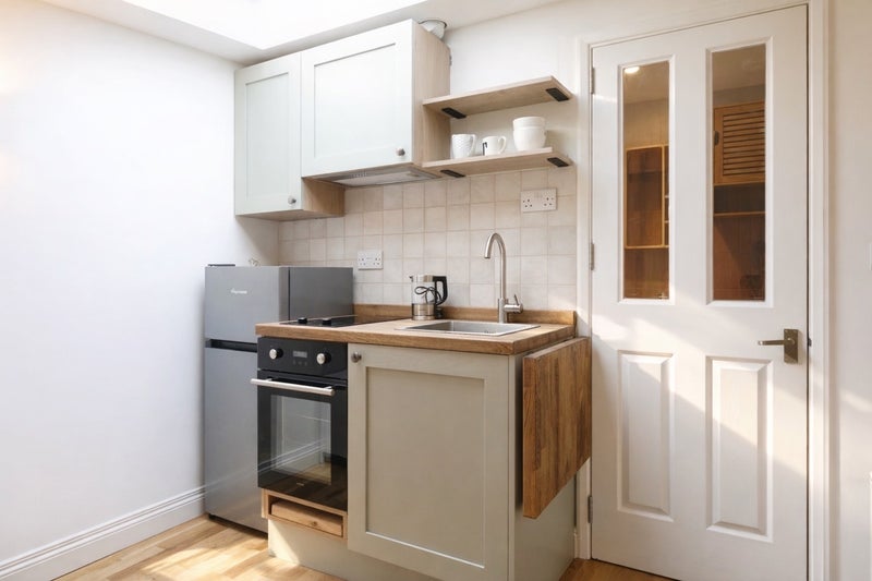 Due to limited storage within the studio, additional storage space in the main house can be provided if needed.