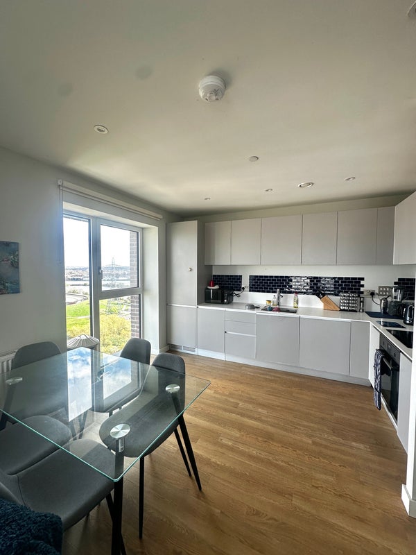 1 double bed with an en-suite located in the penthouse unit of the building. Good sized room with open plan kitchen/lounge and incredible views.