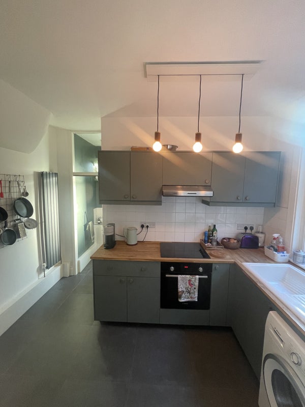 Newly renovated kitchen with new oven, hobs, washing machine and fridge.