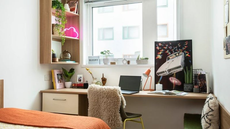-Home to 528 students, all rooms at North Lodge come with a private bathroom, study desk and storage space. You’ll share your kitchen and lounge with flatmates. There’s an outdoor courtyard, a shared common room with a TV and sofas, as well as a free pool table.