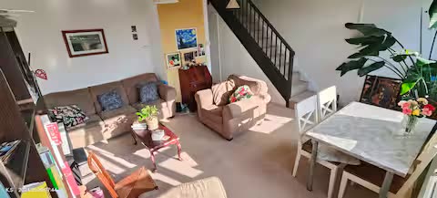 It is fully furnished and equipped with most electrical appliances (fridge, washing machine, cooker, toaster, kettle, vacuum cleaner, iron, etc), pots and pans, crockery and cutlery.