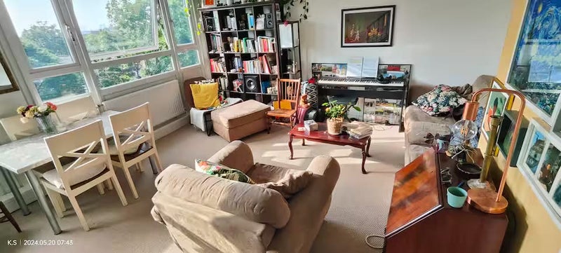 A self-contained centrally heated flat with three bedrooms and separate bathroom and bath, living/dining room with a stunning South facing view of London. The flat is modest but tastefully decorated, with plenty of light and very quiet in a very attractive, quiet part of London, 3 or 4 underground stops from Kings Cross / Euston Station.