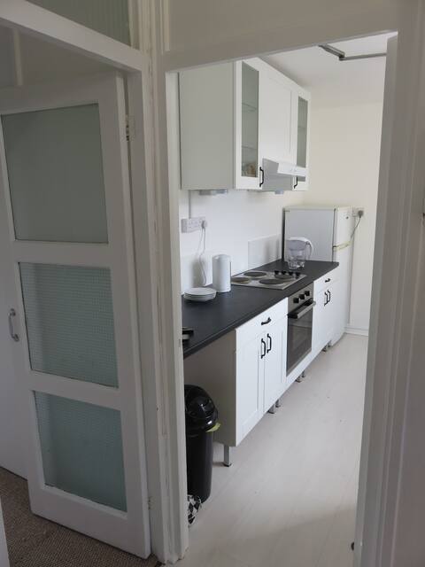 It is fully furnished and equipped with most electrical appliances (fridge, washing machine, cooker, toaster, kettle, vacuum cleaner, iron, etc), pots and pans, crockery and cutlery.