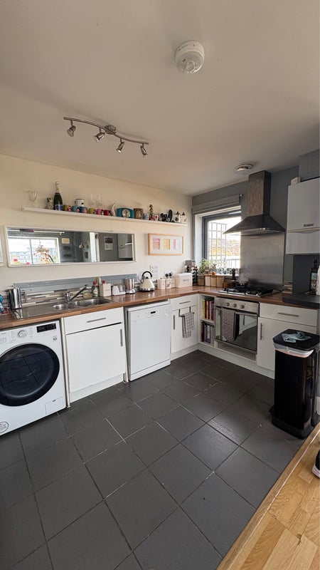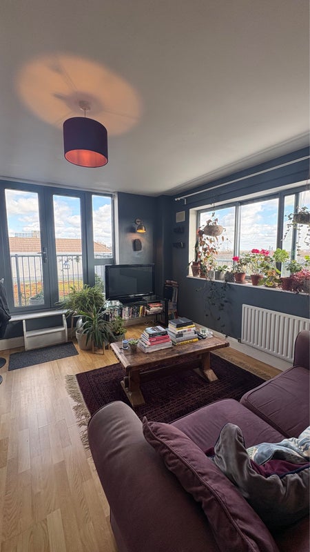 The flat has a shared modem shower room & kitchen living space. Amazing views across London from 3 floors up & there is a small terrace off the living room.