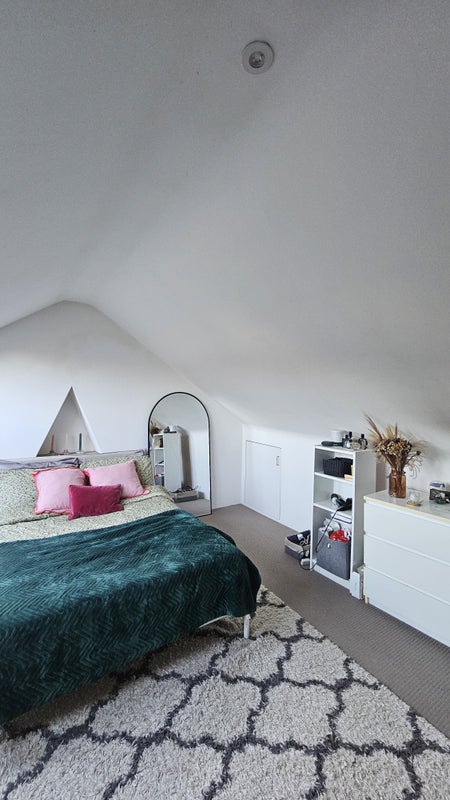 The room has plenty of space, bright Velux windows, tonnes of storage and its own mini-staircase leading to it. The flat is fully furnished with a large kitchen and open-plan living area, modern bathroom, garden and outdoor patio.