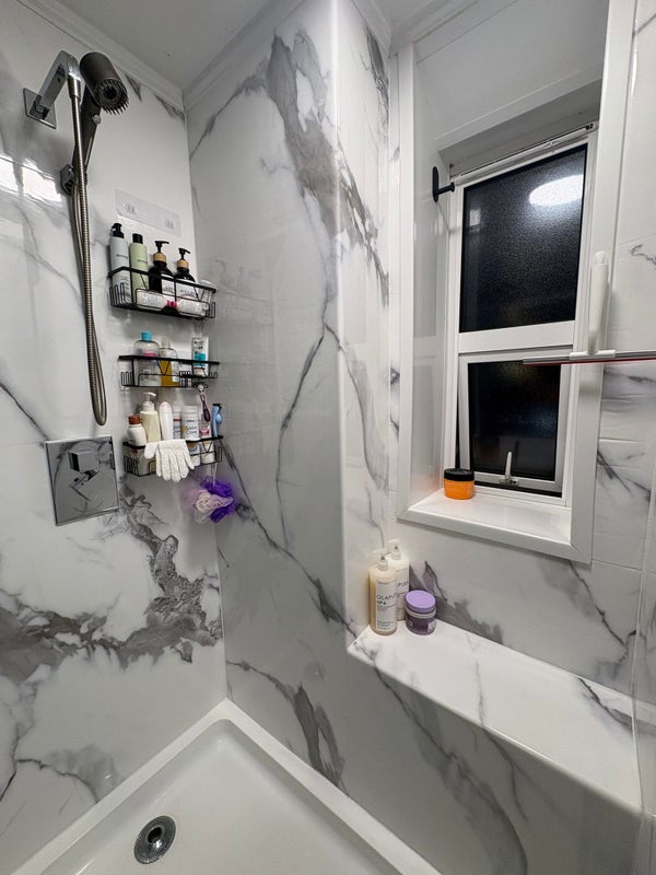 There are x2 double rooms available (one is smaller and currently has single bed but does fit a double bed and I’ve included photos right at the end to show space with a double bed). Both rooms are furnished with a bed, mattress and wardrobes. We have a spacious kitchen and shower.
