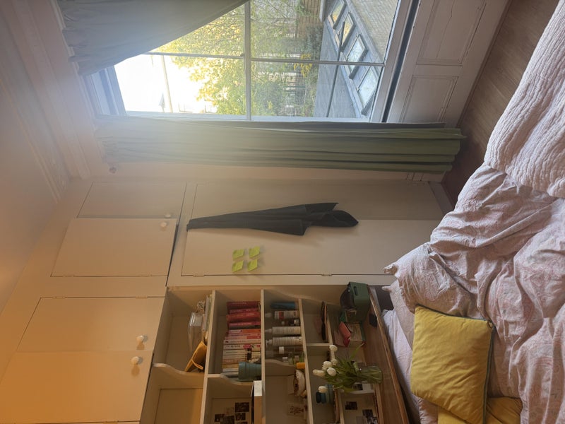 Bright double room available in a friendly house of professionals. Fitted wardrobes and storage in room. Along with a private bathroom.