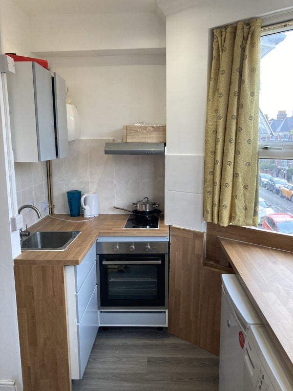Offered furnished with the basic items (bed, wardrobe, a table with couple of chairs) but can be flexible. Electric hob and oven, washing machine provided, electrical radiator - note there is no gas heating.