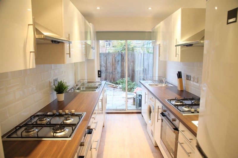 There is a nice full tiled bathroom, separate shower room, 2 toilets, a kitchen, lounge area with TV. The kitchen has a washing machine, large fridge/freezer and storage space. It's fully-equipped. There is also a patio garden. You'll be sharing with professionals in their late-twenties/early thirties, all considerate and nice to live with.