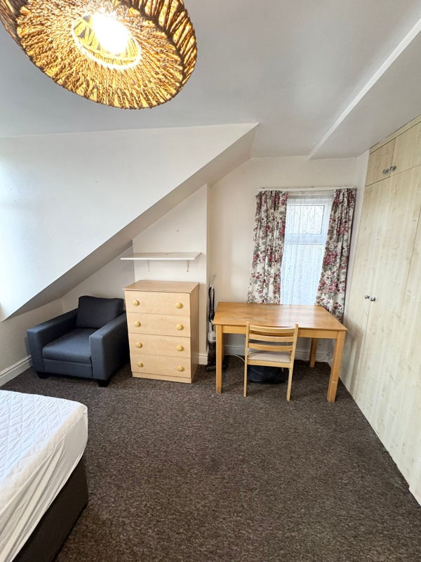 The room is spacious and filled with natural light, and comes with a bed, desk, chair, and storage. The layout is simple, comfortable, and easy to maintain.