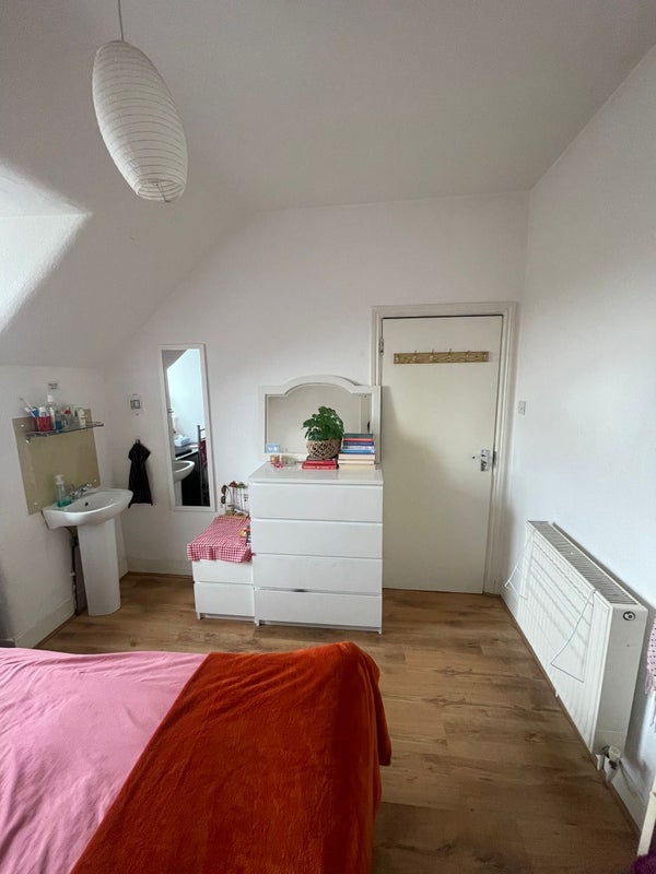 Room 1 (Double £660)- A spacious room on the top floor, that comes with a with bed, dresser and wardrobe.