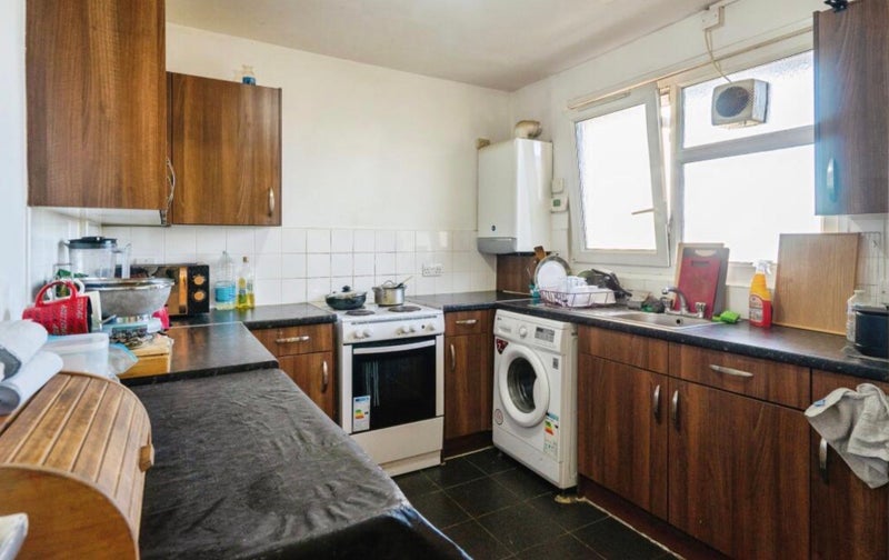 The kitchen has an electric cooker, microwave, washing machine and full size Fridge Freezer.