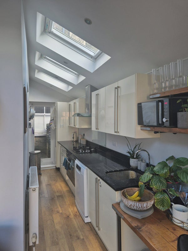 The flat features an open-plan kitchen and living space with bi-fold doors leading out to the garden, plus a newly fitted bathroom. There’s plenty of storage, including a cellar. The landlord is fantastic, quick to respond and has a handyman on call for any issues.
