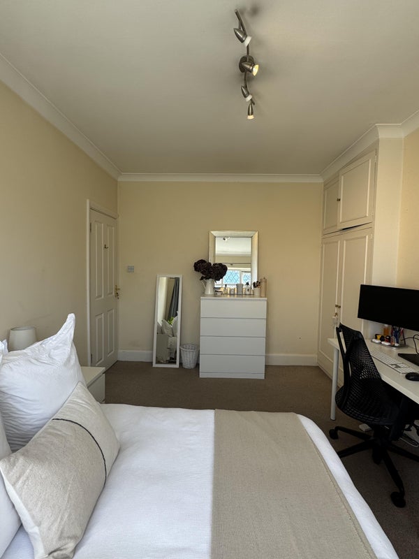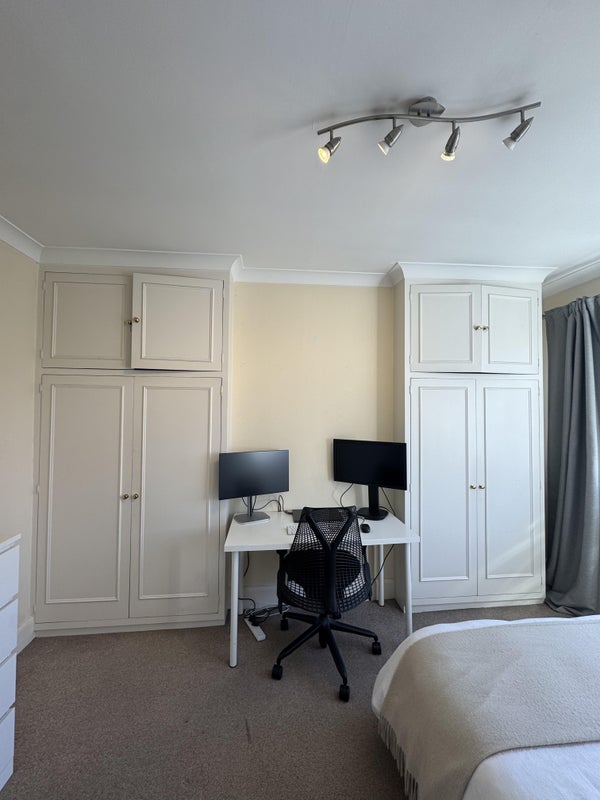 Bedroom has 2 large double wardrobes and gets the best afternoon sun! I am looking to sell my bed, drawers, desk and bedside table with the room