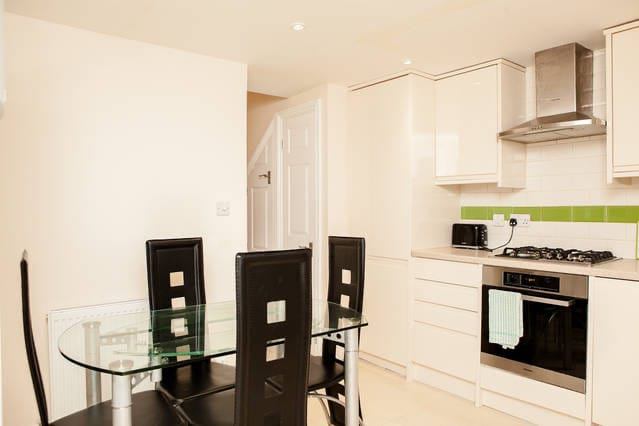 The apartment has a communal fitted kitchen with all the appliances such as a 9fridge, gas, microwave, coffee machine, toasters, washing machine (with dryer), dishwasher, etc.