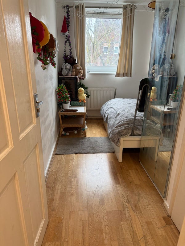 Small double room available in a 4 bedroom, 2 bathroom flat with balcony + shared kitchen/breakout area (no separate lounge)